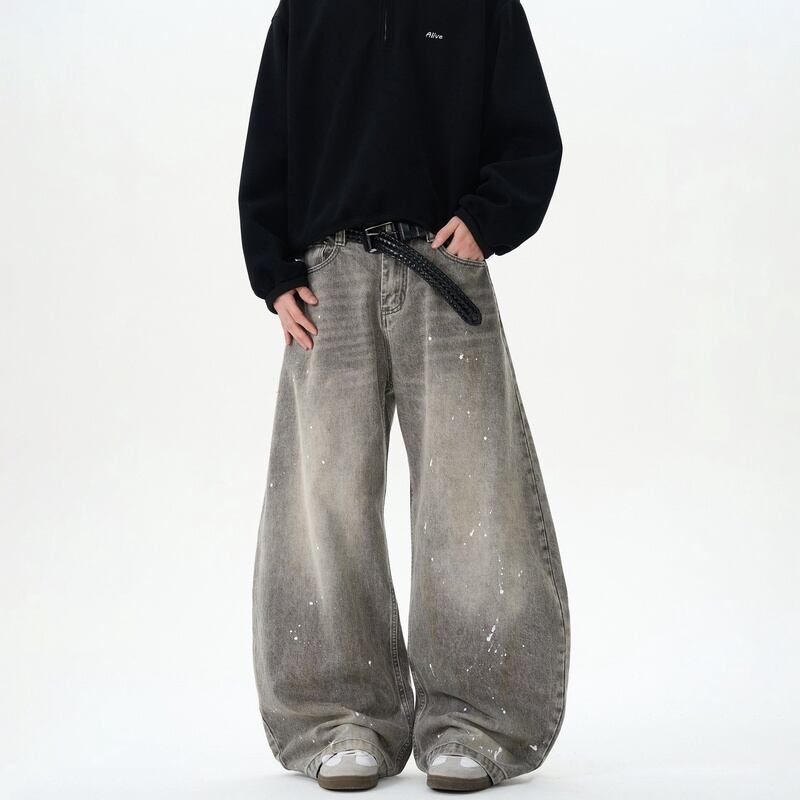 ヴィンテージ風ウォッシュグレーデニムパンツ