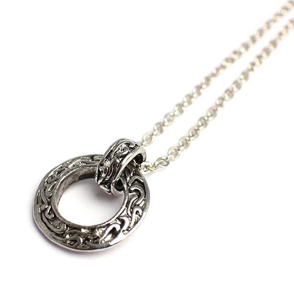 大ぶりなトップがインパクト抜群のアイテム!!シルバーにいぶし加工を施したような、雰囲気抜群のネックレスが登場。シンプルながらも大振りなチャームを使用した重量感溢れるアイテムで、シルバーアクセ好きにも納得のクオリティー&プライスに仕上がりました。自分用の普段遣いにはもちろん、プレゼントやギフトにも最適な定番ネックレスです。