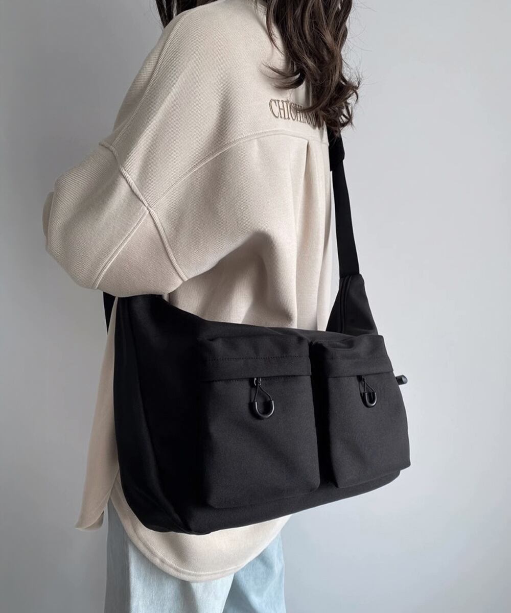 ボディバッグ大きめ/カジュアルバッグ黒/シンプル鞄男女兼用