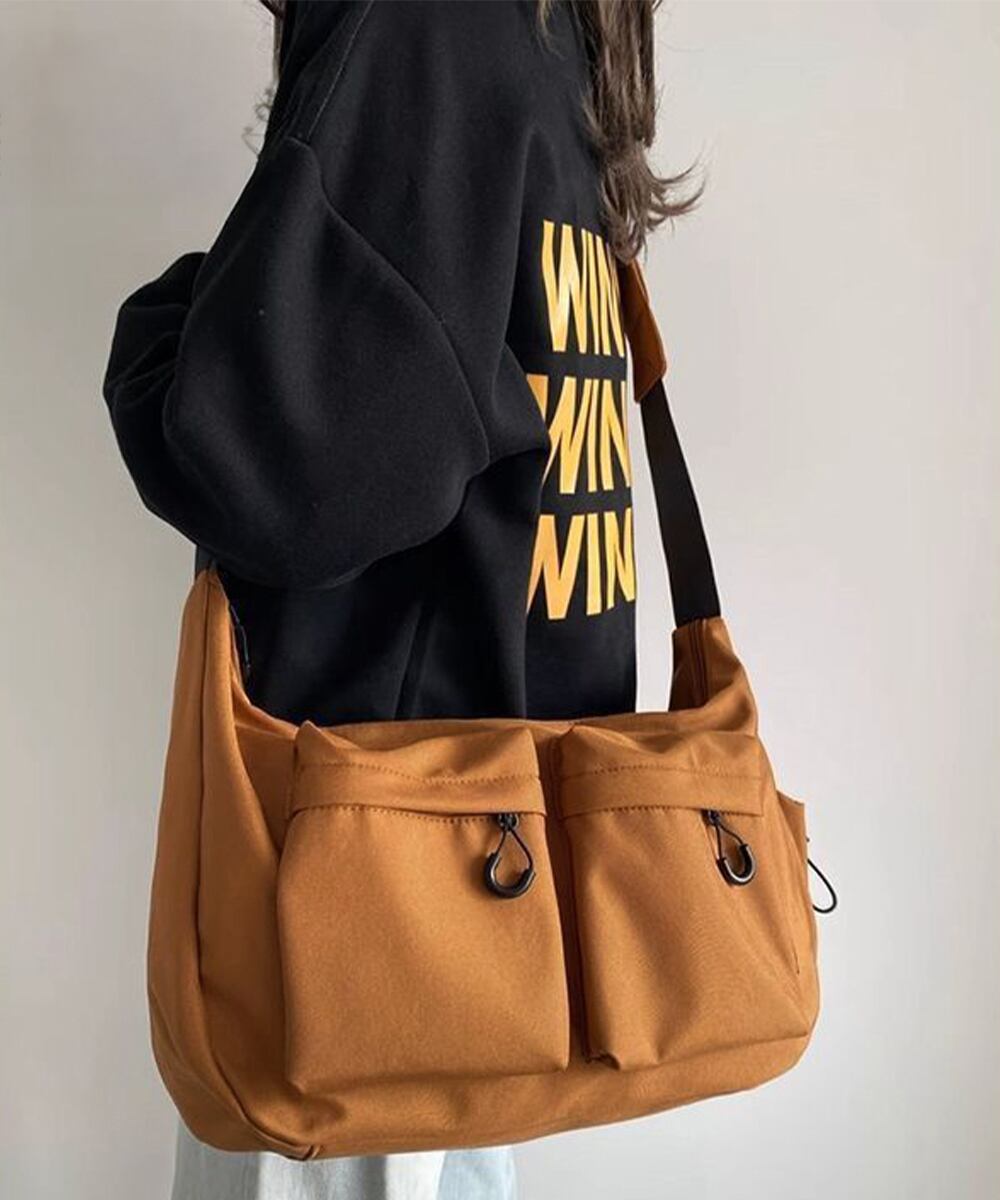 軽量で耐久性に優れ、収納力抜群の実用的なナイロンショルダーバッグ。