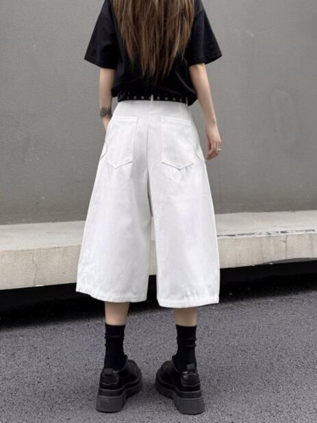 ストリート風カジュアル七分丈パンツ ブラック&ホワイト