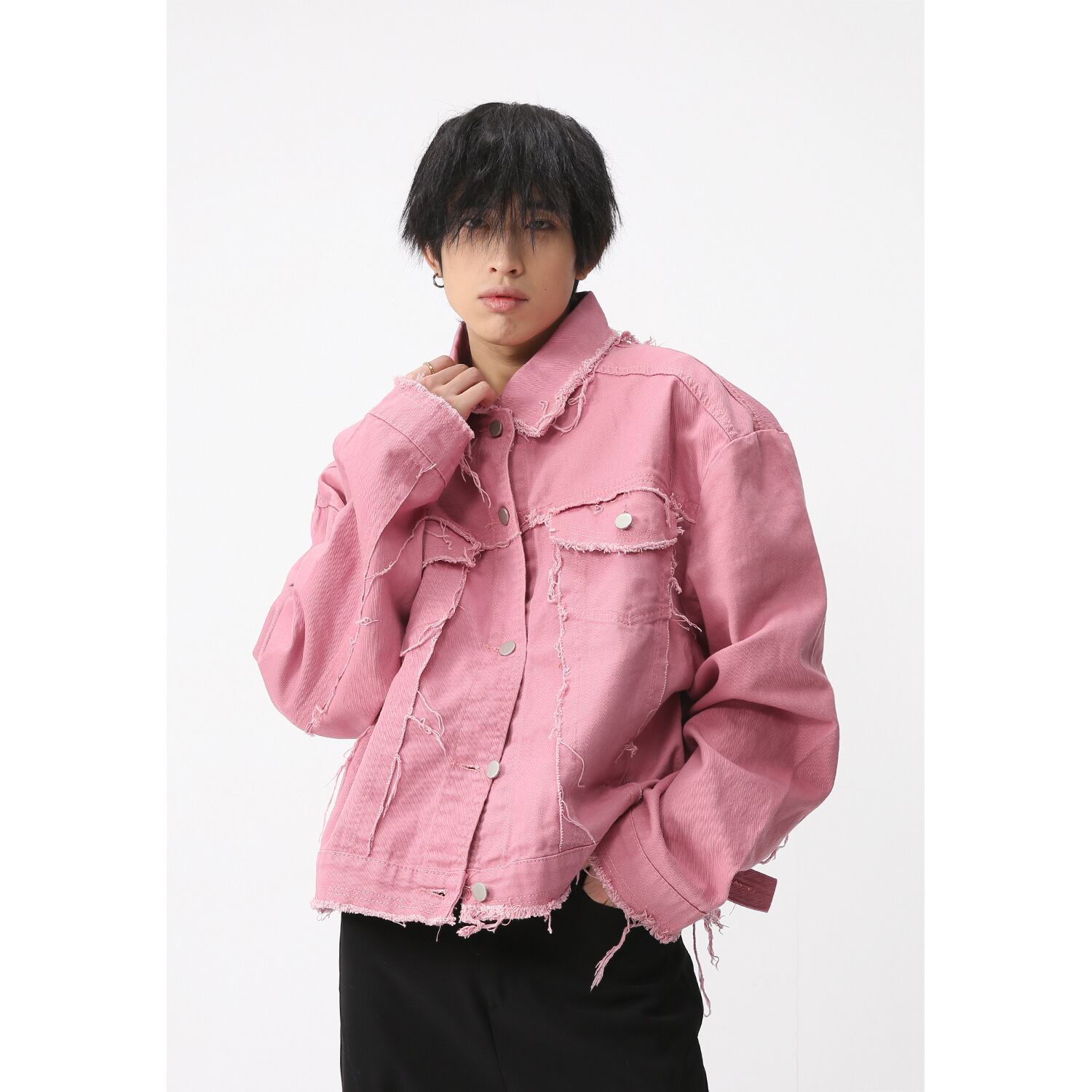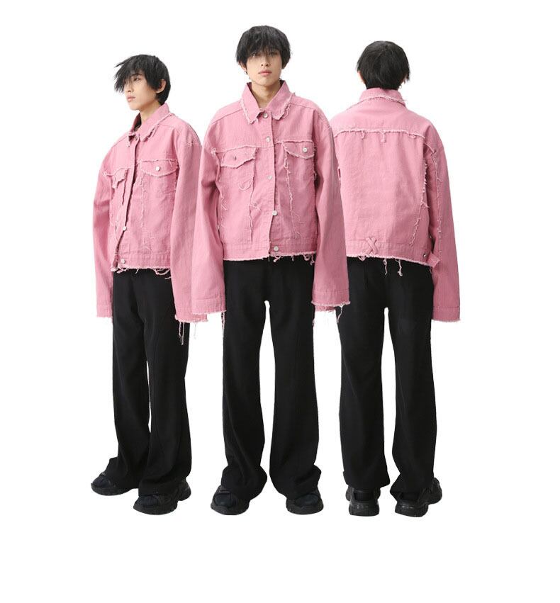 フレイ・クラッシュデニムジャケット ピンク&オフホワイト
