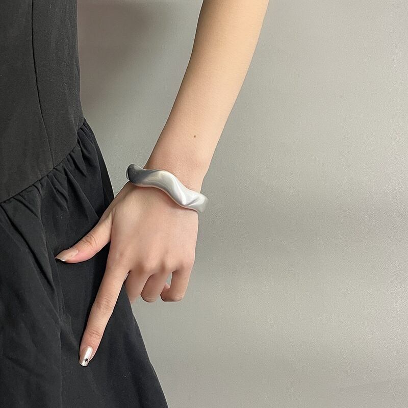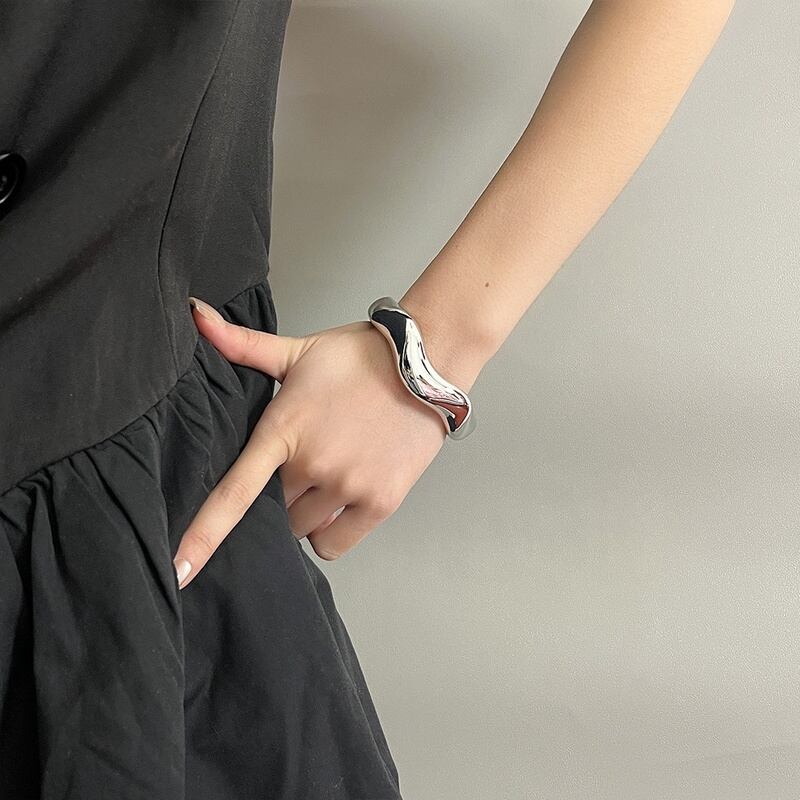 ジオメトリック波型マットブレスレット ゴールド&シルバー