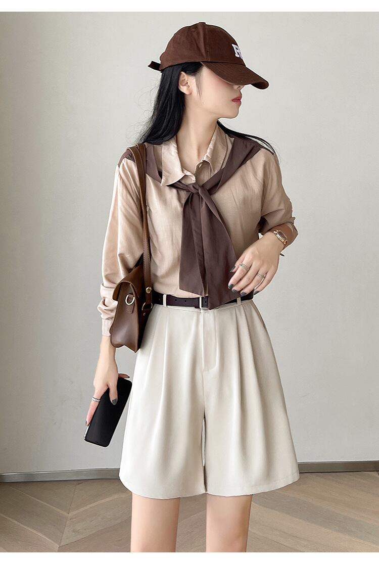 ・脚長効果抜群のタックハーフパンツ。