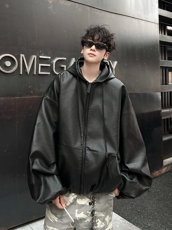トップス アウター ジャケット PU フェイクレザー フード ブルゾン ジャンパー