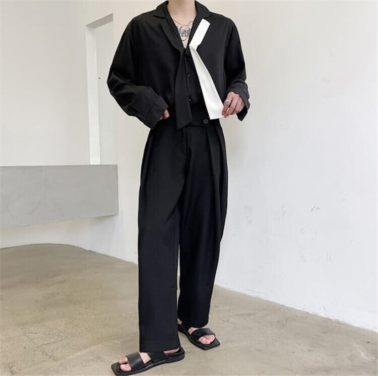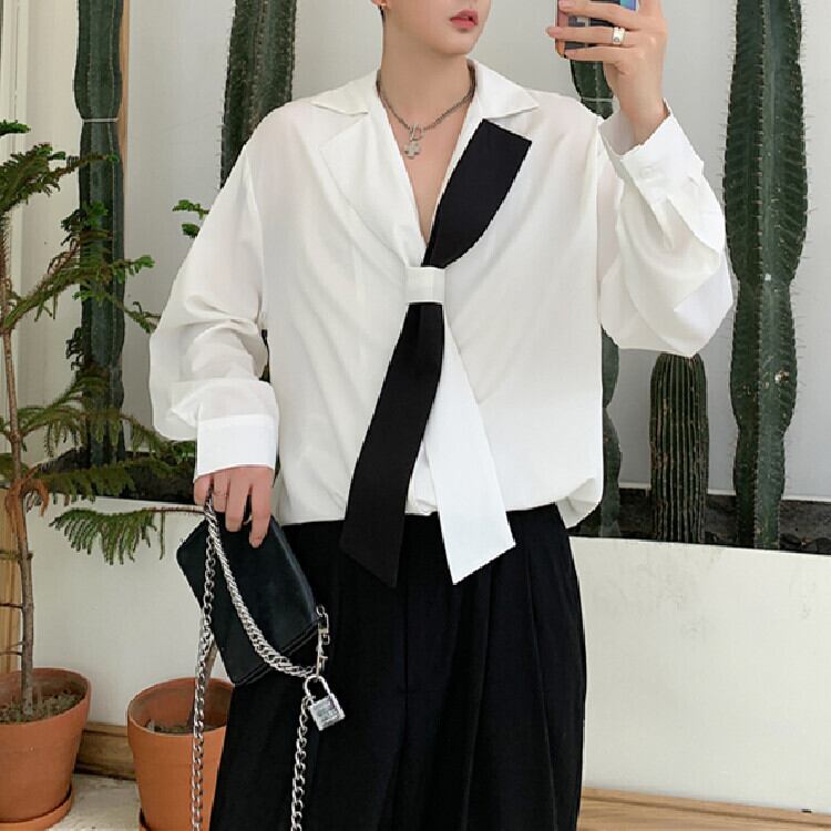 ホワイト&ブラックリボンワイシャツ