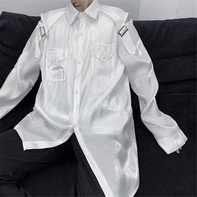 気質 デザインセンス 大人気 オフショルダー シャツ メンズ 長袖