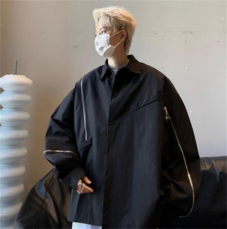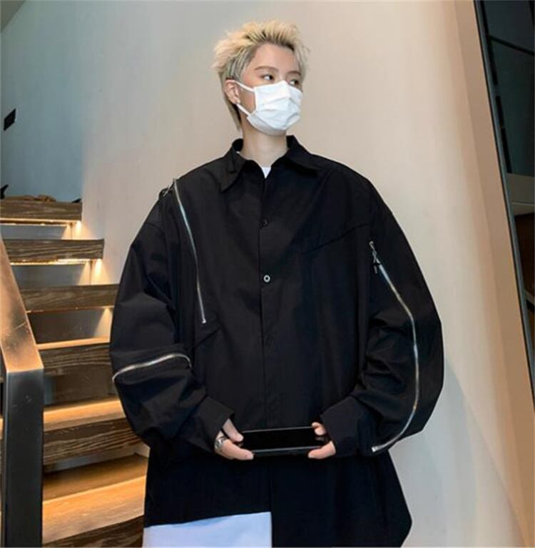オーバーサイズアシンメトリーシャツ ブラック&ホワイト