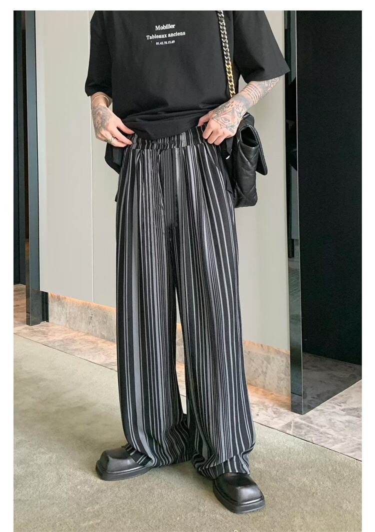 メンズプリーズストレートパンツ ホワイト&ブラック
