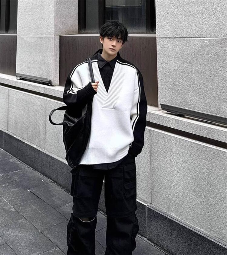 センターバイカラーニットトップス
