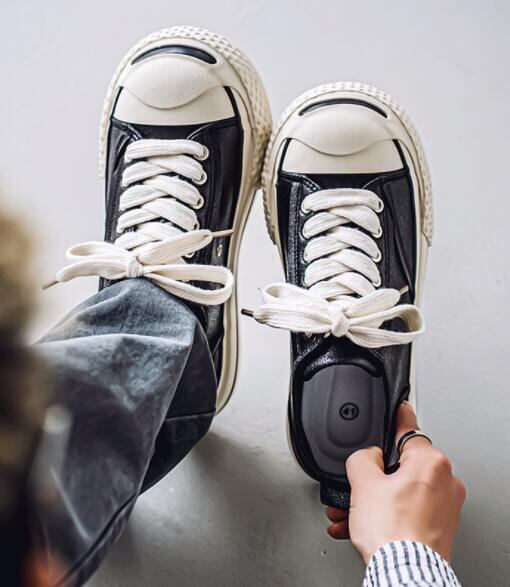 モノトーレスラインディテール厚底スニーカー