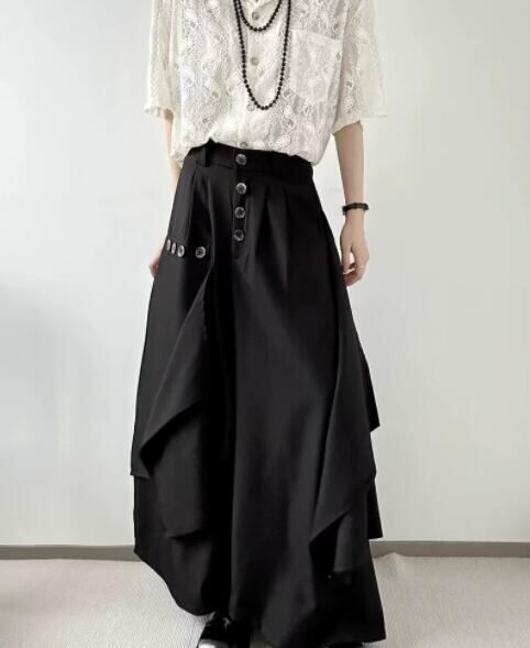 オブスキュアカーブスカートパンツ ブラック&ブラウン
