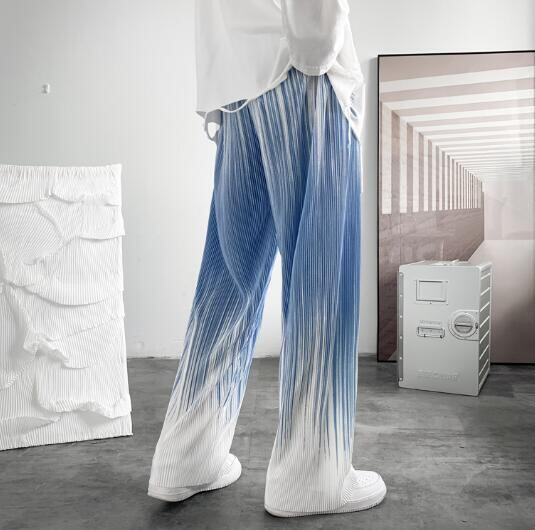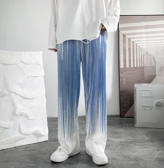 グラデーションプリーツパンツ ブラック&ブルー