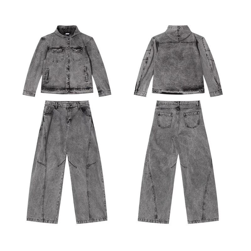 フード付きデニムジャケット&パンツ ブルー&グレー